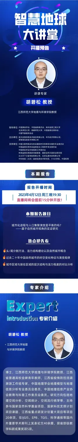 【智慧地球大讲堂】第238期:胡碧松,城市化进程与人口集聚演变是平衡的吗?