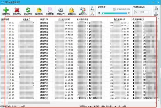 当所有单号都粘贴完成并勾选过滤选项后,点击“确定添加”按钮。软件会开始批量查询快递单的物流信息。