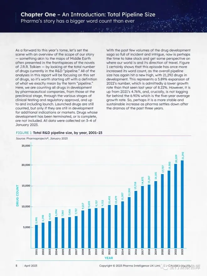 Welcome to Pharma projects ' 2023 review of trends in pharmaceutical R&D.For over 30 years now, I've been taking an annual look at the evolution of pharma R&D, and in this article, IW examine the state of play at the start of 2023.Well assess industry trends by examining the pipeline by company, therapeutic area, disease,target, and drug type, using data from primarily Pharma projects, part of the Cite line suite of products, which has been tracking global drug development since 1980.This report will be follow ec up by our annual supplement reviewing the New Active Substance launches for the year just passed.But here, we'l tell the story of pharma R&Das it is today:an epic tale, with a rich cast of characters and a global scope, and no doubt a number of unexpected plot twists.Hopefully, it wil be a real page-turner!
