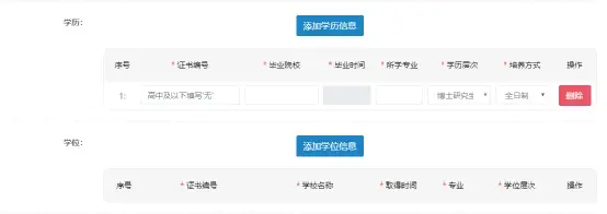 2.学历信息最少填写1条信息,最多可填写5条信息。