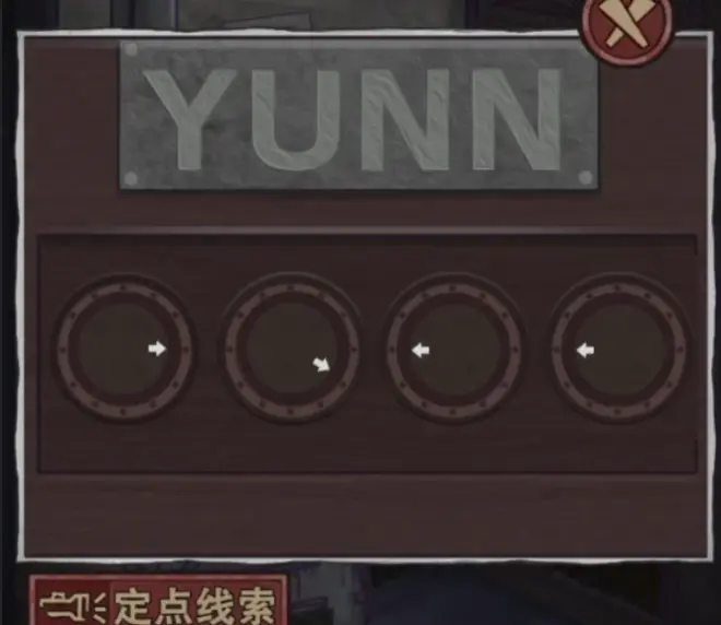 出来输入スイウン解开小箱子获得酝字铁块,旁边碎纸条都是剧情没有线索,回到资料室调查右边柜子上,无柜门的倒数第二层有个四个箭头的小盒子,小盒子上面提示是YUNN,需要找一下方向一类的线索了......吗?