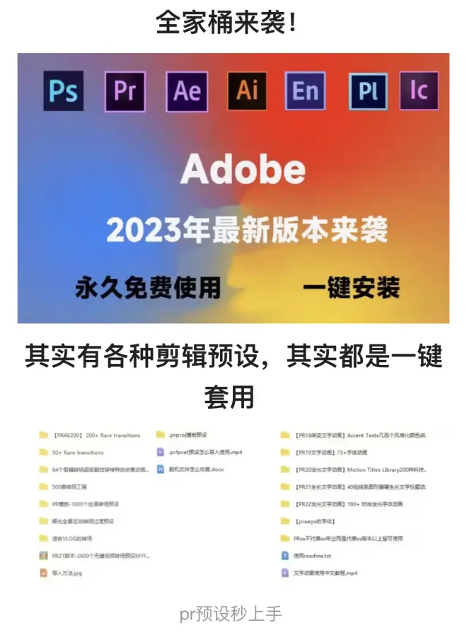 还有制作视频的各种预设包,都是小白必备的!!对小白来说简直不要太爽,资料全都整理好了