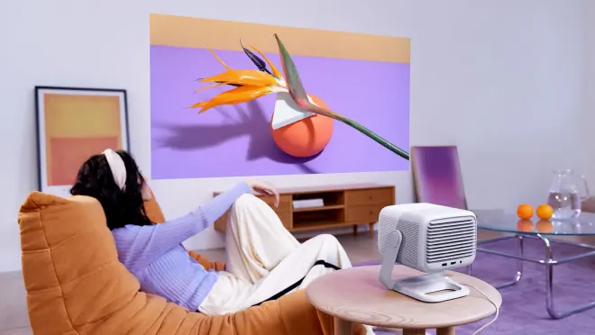 当然,传统的投影仪,尺寸大,噪音大,发热也大,无论是摆在桌上,还是吊在天花板上,都有诸多的使用不便。这也成为了投影仪难以普及的一个的痛点。这时候不要说户外露营这种高端玩法了,就算是室内观景都难以普及。