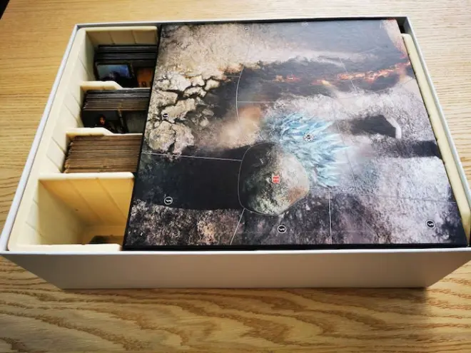 存储盒还配有隔板,以便可以整理卡牌,并为牌套留出空间。卡牌和面板的区域还将包括用于未来扩展的额外空间。
