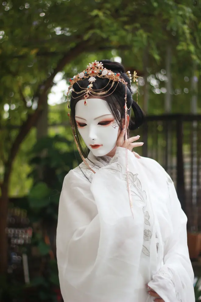 一面面具,一袭汉服,展现古代的尊贵与典雅。
