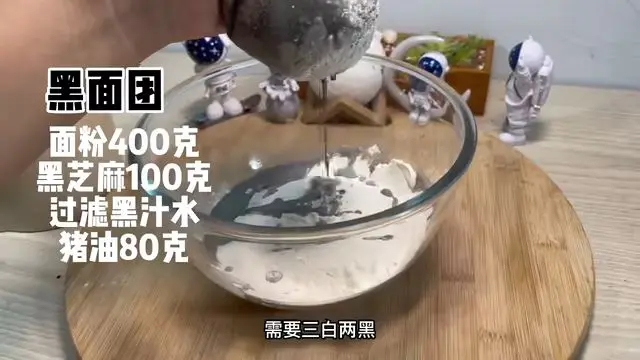 1.6面粉400克黑芝麻100克过滤黑汁水猪油80克