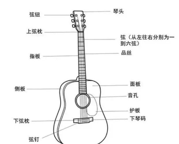 了解吉他结构和基本术语:了解吉他的不同部件,例如琴头、颈部、弦等。学习基本术语,如和弦、品、指板等。