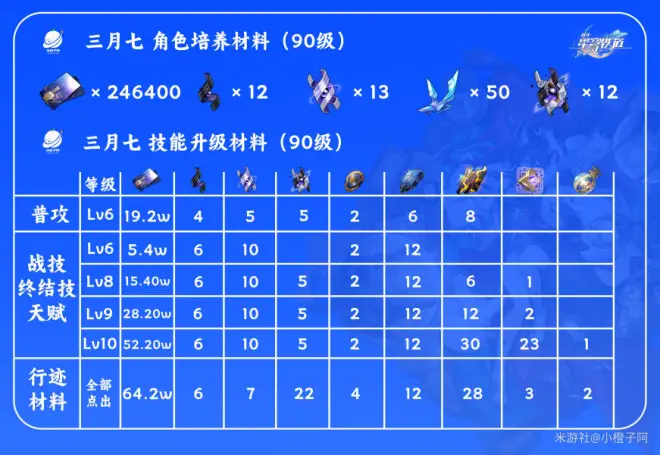 我们事不宜迟,赶快进入「三月七」角色攻略分析,老规矩,这里小橙子还是准备了两份,一份简易长图(附材料表),另一份就是超详细千字攻略,小伙伴们根据自己时间自行安排。