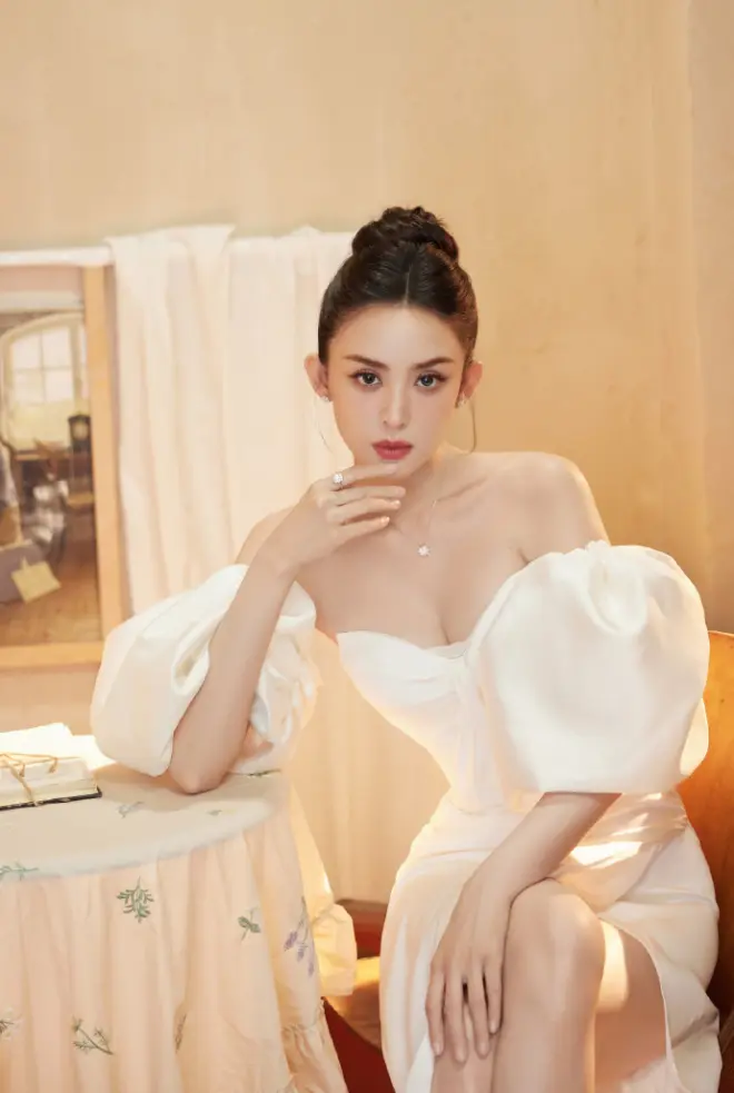 这款造型是古力娜扎在直播时的穿搭,这款裙装在古力娜扎的演绎下,给人一种优雅时尚又经典的感觉。而裙装采取泡泡袖的设计,又增加了可爱和调皮感。