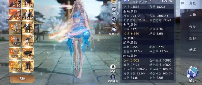 天气属性:火攻4271,火抗8184,风攻11660,风抗8256