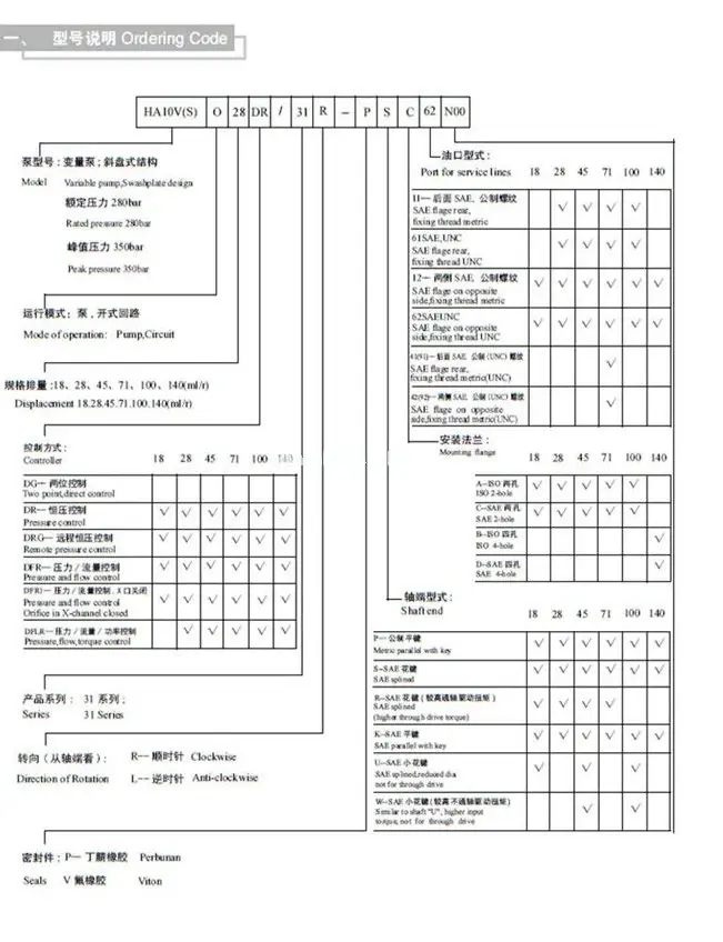 A10VSO28DFR1/31R-PPA12N00是恒压变量柱塞泵A10VSO系列中排量规格为28的产品之一。该型号的泵采用