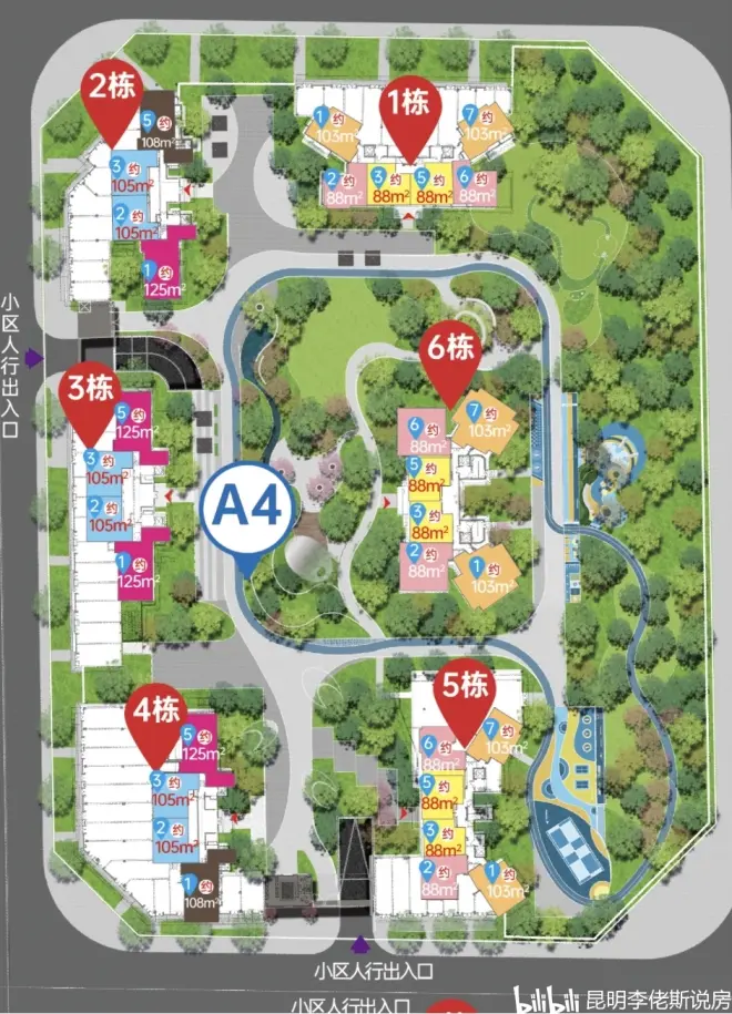 其中A5、A6、A10、A13四个地块为回迁安置房(在古滇路以东,与商品房分开)A2、A3、A11、A12、A15五个地块暂未推售,A8、A9地块已售罄,A4、A7剩余少量户型常规销售中,目前主要推售A14地块。