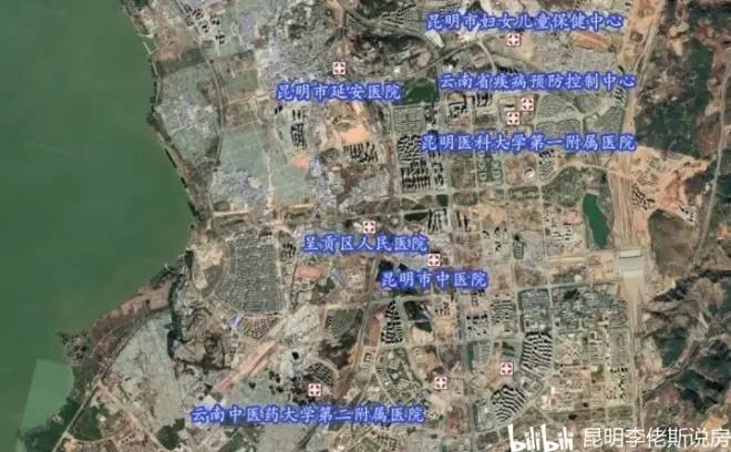 项目内部配套两所幼儿园和一块小学规划用地。周边还有民大附小、呈贡一中、昆明师范大学附属小学、云南大学附属小学等教育资源。 3.医疗