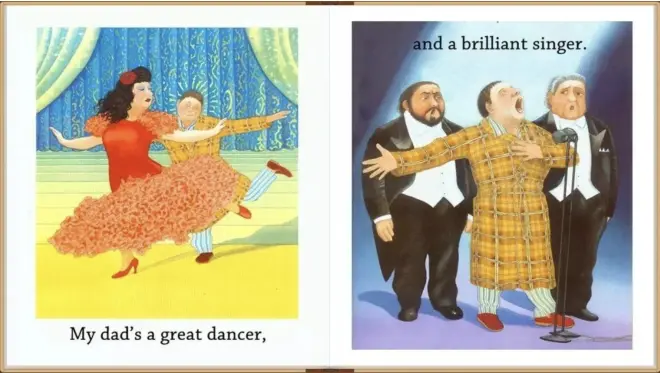 主要内容:绘本以孩子的视角,描绘了这样一位爸爸:他天不怕地不怕,连大野狼都不怕!他会唱歌会跳舞还会逗孩子笑;他像马儿一样吃饭,像猫头鹰一样充满智慧。语言朴实简单,通俗易懂又不失文学艺术。同时运用细腻的画风和夸张的想象,将爸爸无所不能的形象刻画得栩栩如生、生动有趣,表现出了孩子对爸爸的崇敬之情。