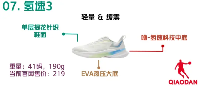 总结:氢速3.0是一款轻量化的休闲慢跑鞋,脚感轻质柔软,但牺牲了一定的抗扭性和耐用性,适合日常轻质慢跑,出行穿搭。