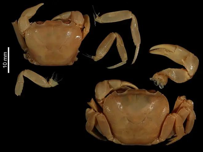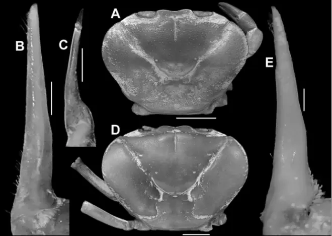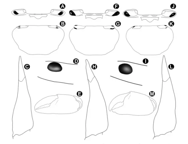 图源:McFarlane, D. A., Lundberg, J., & Christenson, K. (2011). New Records of Crabs (Crustacea: Decapoda: Brachyura) from the Caves of Gunung Mulu National Park, Sarawak, with a field key to the cavernicolous taxa. Speleobiology Notes, 3.