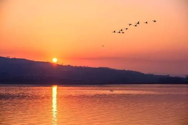 “落霞与孤鹜齐飞,秋水共长天一色。”这句诗描绘了一个秋天的傍晚,在天空中,落日的余辉映照着整个天空,让人感受到一种温暖而祥和的氛围。孤独的鹜鸟在这样的背景下飞翔,显得非常孤独和寂寞。但是,即使是孤独的鹜鸟也能和落霞共舞,成为了这个美丽场景中不可或缺的一部分。秋水也被描绘出来,与天空相连,形成了一片无边无际的景色。所有的一切都融为一体,形成了一个完美的画面。