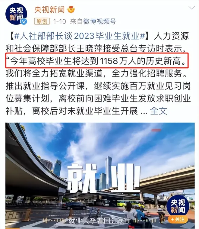 但是另一方面一个令人不得不面对的现实是,就业市场的供大于求,从23年教育部、人社部召开了高校毕业生就业创业工作会议公布的数据来看,2023届全国普通高校毕业生规模预计将达到1158万人。学历面临“通货膨胀”。许多体制内或者大厂只招211、985或者更高学历的人,这就迫使越来越多人走上考研这条道路。