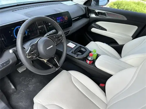 来到车内感觉与外观设计截然不同,可以用自由、舒适形容。中控采用7+12.3英寸智能双连屏布局,一体化设计提升了科技感和操控的便捷性。环抱式座椅设计带来更好包裹性和更为舒适的驾乘体验。