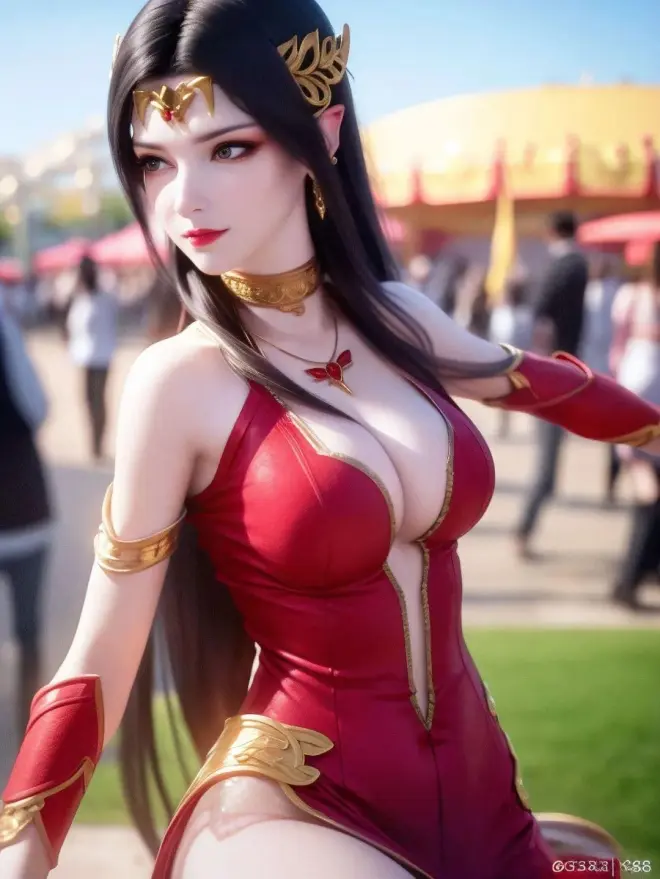 她的身材更是曼妙动人。她修长的双腿笔直挺立,身姿挺拔而优雅。她的纤腰如柳,诱人而婀娜。她的胸部丰满饱满,引人遐想。她的身体线条优美,完美地展现了女性的柔美和婀娜多姿。