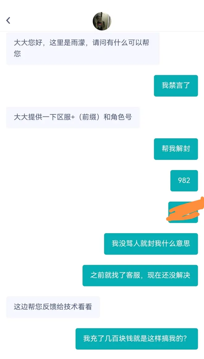 但是在火源战纪这个地方就真的恶心到我了,官方因一些玩家在线下被骗,然后在游戏中设置自动识别玩家聊天内容是否有涉及线下账号,一经发现就直接封号,而且这种封号手段在游戏内没有给到明确通知!我也是不小心触及了,下面是客服处理方式(这是第二个客服,因为之前客服没有处理好问题,脾气有点大)