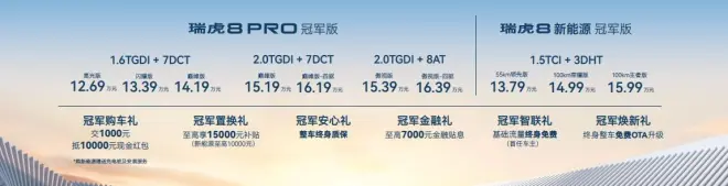 瑞虎8 PRO冠军版12.69万元起,搭载鲲鹏动力1.6TGDI/2.0TGDI