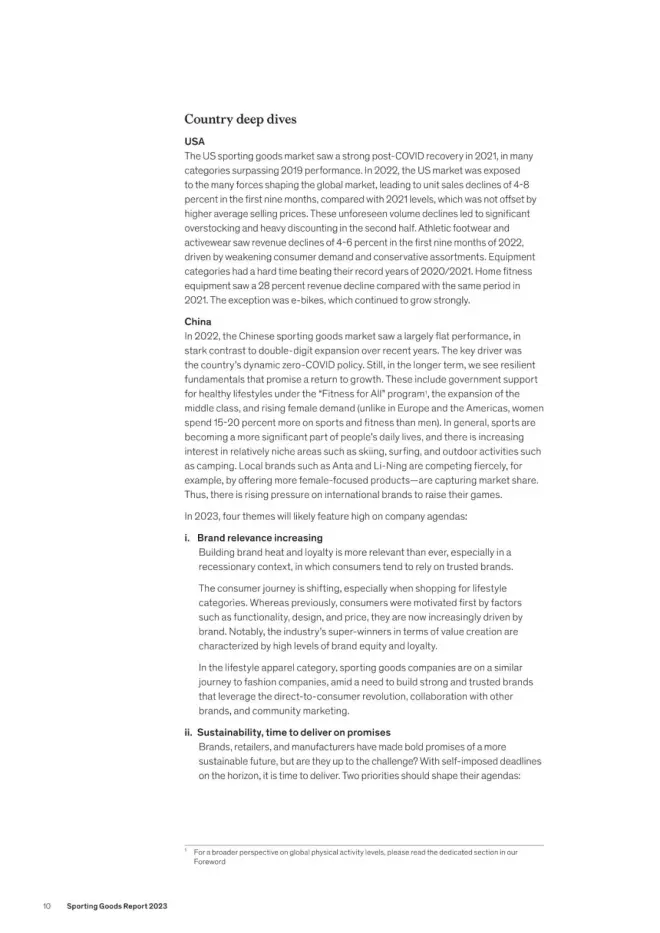 The World Federation of SportingGoods l ndustry(WF SGI) and McKinsey&Company have teamed up once again to present our third annual Spo orting Goods Industry Report-“Sporting Go oods 2023-The need for resilience in a world indi sarra ay.After the industry recorded a widely positi ve performance in 2021, the past year has s een multiple challenges, including the threat of global r e cession, war in Europe, continued supply c hain challenges,and rapidly rising interest rates;all contrib uting to a world in disarray.