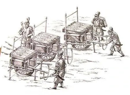 自从火药武器从宋朝投入战斗开始,火箭类武器和身管类武器的“内卷”就从未停止过。在欧洲和日本,身管火枪以其更好的精度和威力受到青睐;而在中国明朝,射速更快,造价更低的“神机箭”(包括一窝蜂)则一直稳居装备榜单,一直到后来更先进的身管武器进入中国后才逐渐被取而代之。之所以神机箭被大量生产运用,除了成本较低外,其壮观的发射场景对于不熟悉火器的少数民族的震慑力,也是其潜在的战术优势。