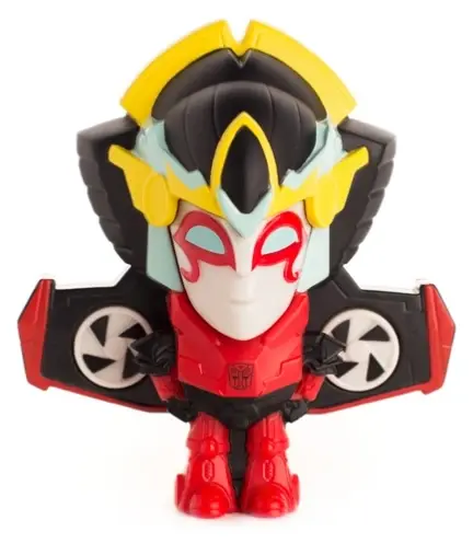 这款风刃Windblade(BB)是一款超级变形的大头玩具,与小马宝莉My Little Pony一起作为麦当劳2018年9月儿童套餐玩具的一部分发布。她的噱头是,她背上有一个按钮,当你按下它时,就会旋转她的涡轮机。