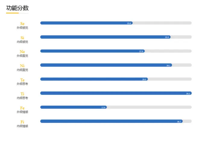我的分值真的蛮离谱,四个内倾分值是最高的,ni,ti、fi、si都高,不确定是intj还是intp,出于现实考虑和减少内耗,好想提高se