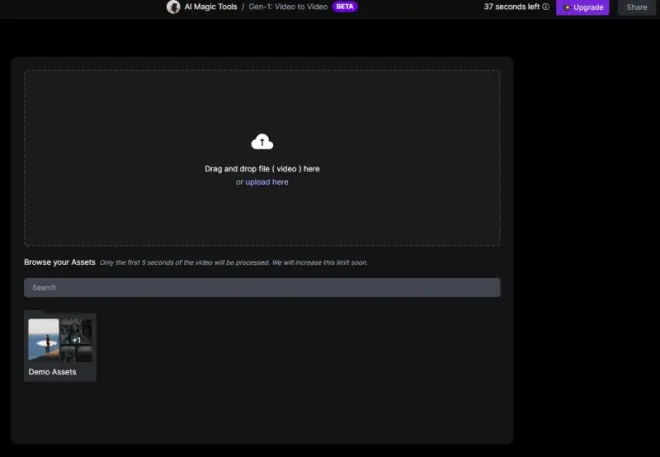 登录到Runway后,点击左下角的“Gen-1 Beta”。