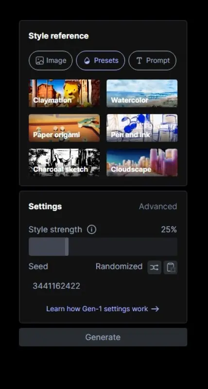 Runway Gen-1 Ai文本转视频工具是一款基于人工智能技术的视频生成工具。通过输入文字描述,可以快速生成符合描述内容的视频片段,并可以透过不同的模式、风格强度值以及图像替换等参数,进一步调整生成的视频效果。