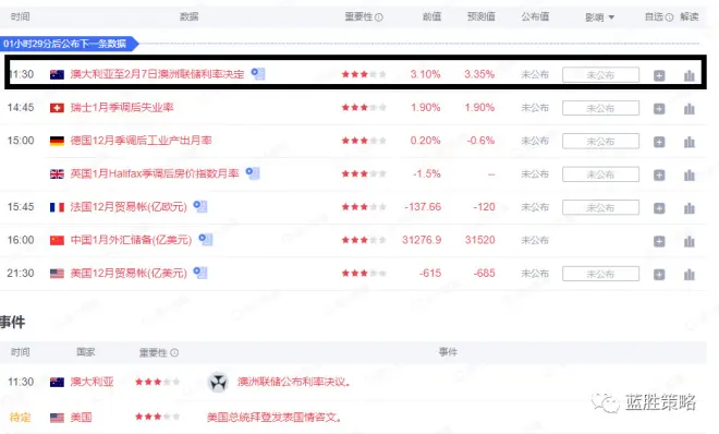 今日重点关注的财经数据与事件:2023年2月7日 周二