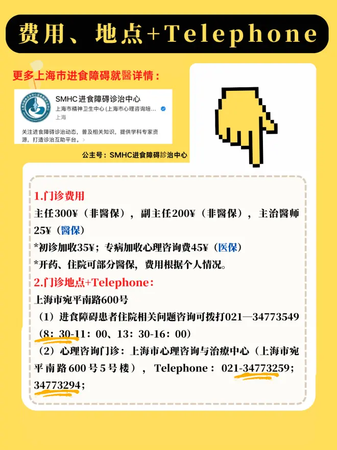 「重磅干货」上海市精神卫生中心进食障碍診治中心挂号/费用/加号/醫師排班/异地医保详解指南 *本篇为 2023年6月撰写(具有时效性),信息内容来源醫院官网、医保发、《中国进食障碍防.治指南》 *由@少女神婆婆、多位上海就診亲历者和临床心理学生整合,经由院方审校。 *可转发原文,未经允许不得不得擅自搬运或撰改。