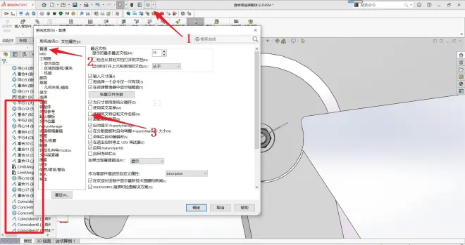 进入系统选项,点击第一项--普通--,然后从上往下数,第六和第七行,带有English,把勾去掉,重启SW就可以了。
