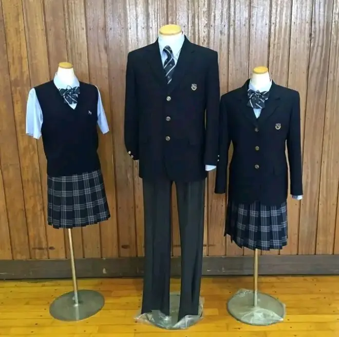 洸星的校服和堀越校服也非常像。 格子领结,条纹领带,黑色三扣女式外套,浅蓝色衬衣。