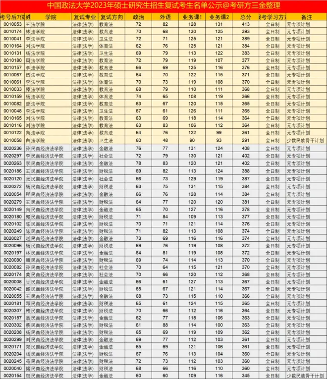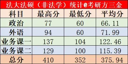 法硕非法学有3个学院招生,最高419分,最低356分(非专项计划)