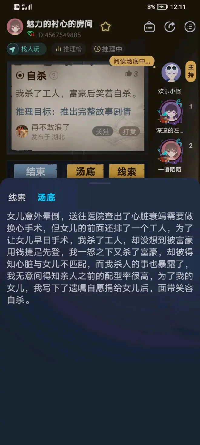 由于本人玩的海龟汤较多,不要在意那些细节!当然,我也会随时爆料部分海龟汤! 别问作者为什么玩过这么多海龟汤,我都是去人家海龟汤的作者房间里面玩!剩下的不用在意那么多细节!答案仅供参考!