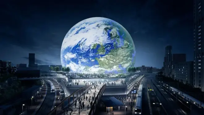 这座建筑是伦敦的第一座,由LED的外壳组成的球形建筑。这些发光二极管是可编程的,可以在建筑物表面显示图像,包括广告。设计表明,图像将在150米外清晰可见。无论是史诗般的演唱会还是超凡的表演。观众将沉浸在多感官环境中,可以像海洋一样广阔,也可以像森林一样深邃。