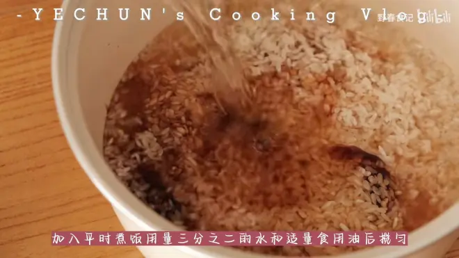 淘净的大米放入锅中加入调料,将切好的食材放入