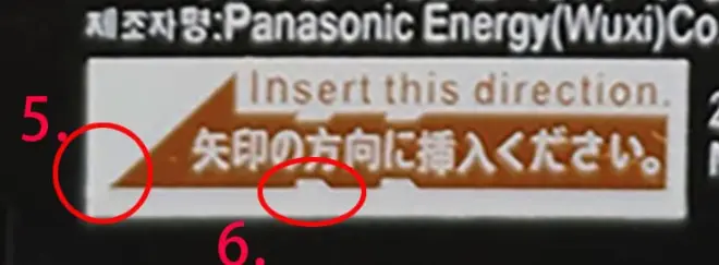 5.电池尾部橙色标志旁边的数字是镭射雕刻,而不是印在电池上也不是和电池塑料融为一体的。并且最后一个字母对应的在「小方框」上方