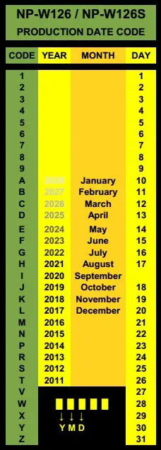 2. NP-W126S 中的 6 对应的是上面字母 Y,S 则是空出来,假货电池,S 对应的可能是上面的 Y。