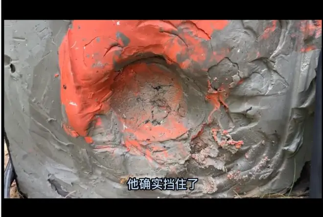 我们再来看看某热门视频所谓挡住12.7穿甲燃烧弹的防弹衣的表现,不过这玩意没有用背凹测试所需要的胶泥,也没有用高速摄像机拍摄最大瞬时凹陷。那就只能从其他角度分析了。