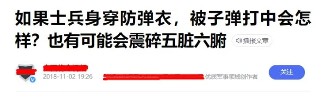 但各路军迷博主的科普之后,随之而来的则是防弹衣无敌论,想当然的以为只要防弹衣不被穿透,就一定不会受伤