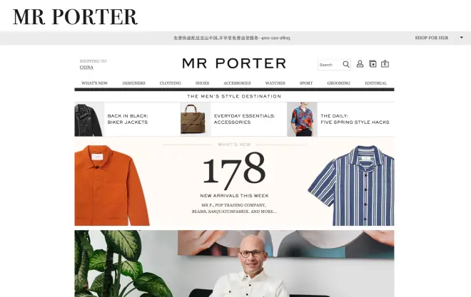 现在提及男装购物,就无法避开 Mr Porter。不夸张的说 Mr Porter 就是现代男装购物概念的集合体。非常简约商务的网页设计,同时保持着高雅不俗的服务态度,成为世界上流精英男士的衣橱。顶级西服和大衣,奢侈的手表和香水,知名设计师品牌应有尽有。你能想到的 Gucci, Tom Ford, Raf Simons, Balenciaga, Prada 但同时 Mr Porter 也会偶尔开办特别场出售网红运动鞋和限量款单品来自 Levi’s Club Monaco, Saturdays NYC。最最关键的是它们家的包装盒走心程度让你想要流泪,每次都要把 Mr Porter 的包装盒精心保留下来做收纳。气场,调性,单品,魅力和服务近乎完美,这样的网站必看。