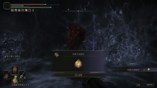 在龙人士兵附近瀑布里可以捡到护符玛莉卡的烙印