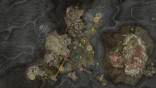 点燃全部的石碑后来到希芙拉河(岸边)赐福点,可以发现附近角骸灵地的石柱已经被全部点燃