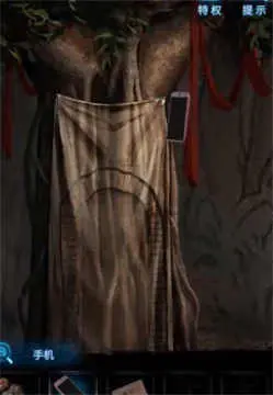 3:之后到第二个场景,将图钉钉在道具树的幕布上,然后用手机代替锤子固定好后出现一道暗门;