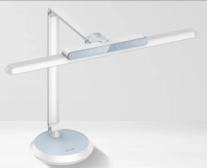 松下致准是一款矩形发光面的台灯,采用扩光透镜技术扩大了纵向的光照面积,并散射出非直线的光线,实现均匀的光照效果。灯头装载了红外感应功能,可以侦测到人体入座并自动打开灯光,还拥有智能感应调光、工作阅读双模式、定时模式、延时关灯和睡眠模式。另外,它还配备了磁吸无线充电面板,同时也符合国AA级标准,RG0无蓝光危害和无可视频闪。