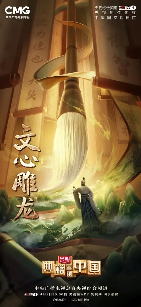 4月2日(周日)晚八点档,敬请期待由中央广播电视总台出品,央视综合频道、央视创造传媒和中国国家话剧院联合打造,中国国家图书馆参与的大型文化节目《典籍里的中国》第二季第十期《文心雕龙》,让我们一起秉承先贤之志,雕千年文脉,传中华精神!